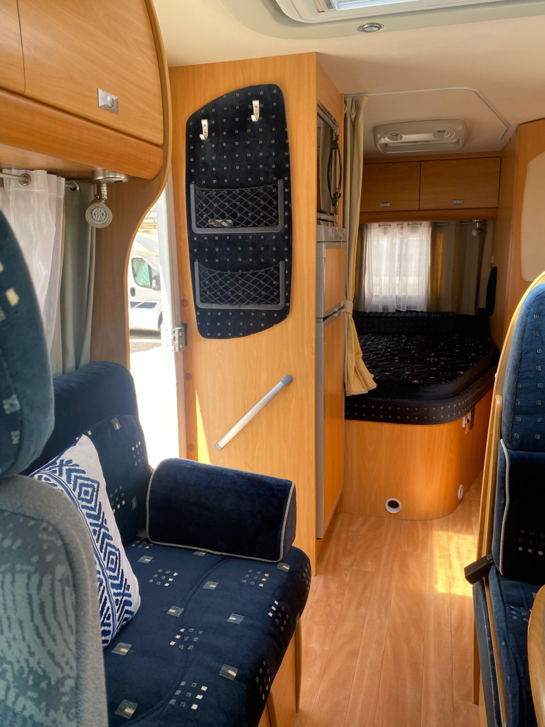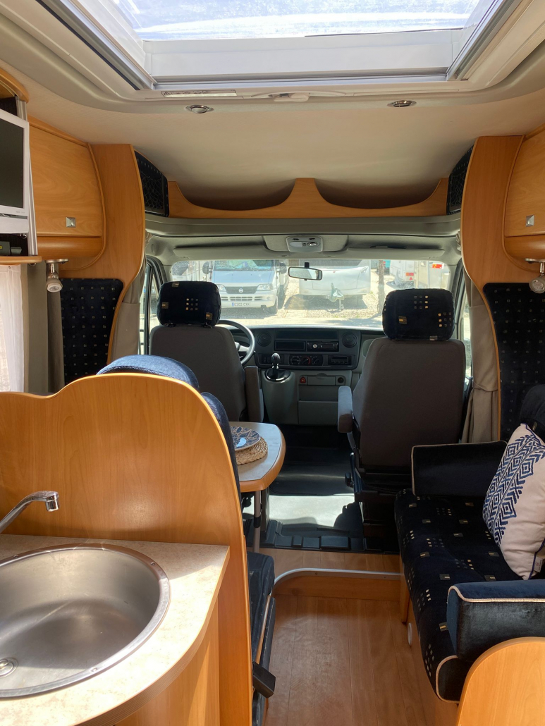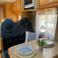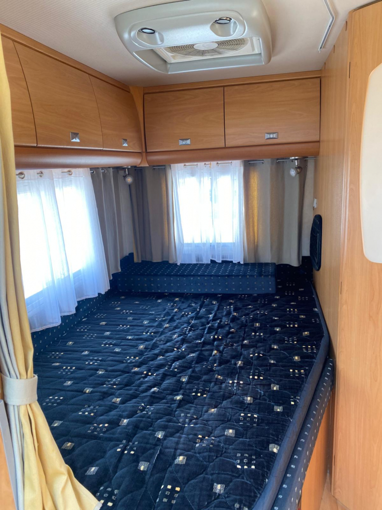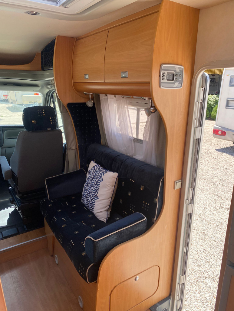 Diseño interior muy funcional que maximiza el espacio y la comodidad: Capacidad para 5 personas (viaje y pernocta). Cama francesa fija trasera, amplia y cómoda. Cama convertible en salón, perfecta para invitados o familia. Zona de comedor espaciosa y luminosa. El interior se encuentra en excelente estado de conservación, con tapicerías y mobiliario muy bien cuidados. Pensada para ofrecer total autonomía durante tus viajes: Fregadero de acero inoxidable. Cocina de gas con varios fogones. Horno integrado, frigorífico grande. Amplios espacios de almacenamiento. Cuarto de baño independiente. Ducha separada, aportando mayor comodidad. WC y lavabo en perfecto estado.