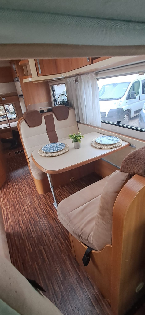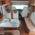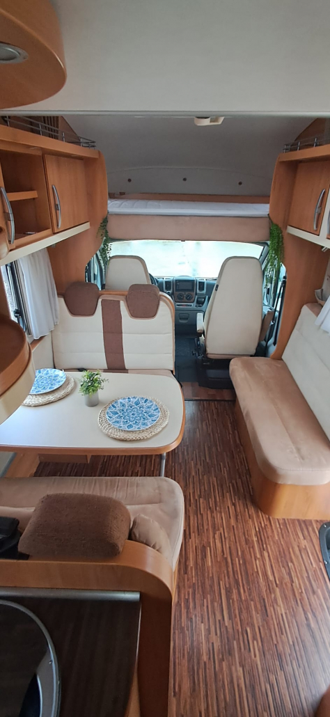 Esta autocaravana cuenta con una distribución muy funcional, ofreciendo 4 plazas homologadas para viajar y dormir, con amplios espacios interiores pensados para el confort en ruta y en parada.