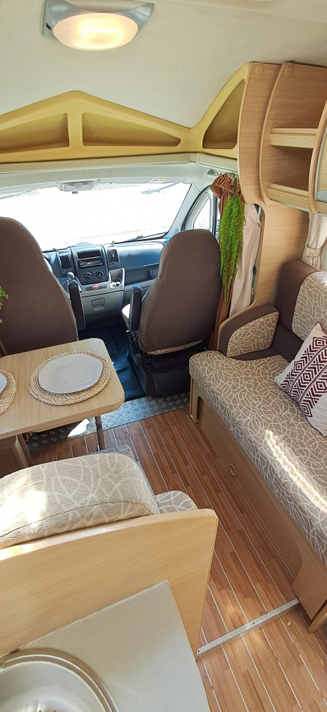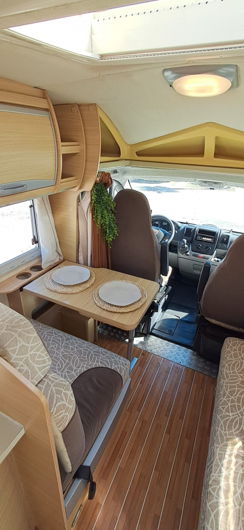 Dispone de 4 plazas homologadas para viajar y dormir, lo que la convierte en una opción perfecta tanto para parejas como para familias que buscan comodidad y funcionalidad en cada escapada. Su distribución interior está pensada para aprovechar al máximo el espacio, con un salón amplio y luminoso gracias a los asientos delanteros giratorios, creando un ambiente acogedor para compartir momentos en ruta.