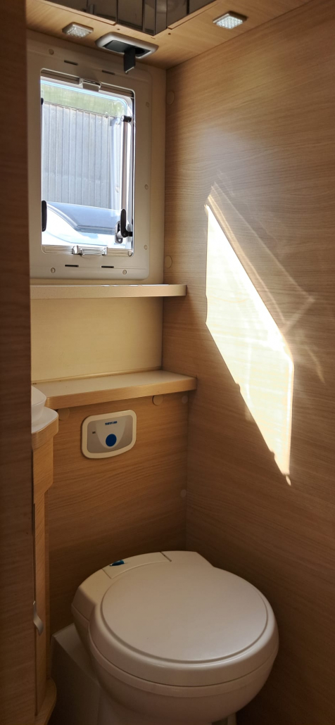 El baño completo ofrece ducha y WC, asegurando comodidad e independencia en cualquier destino. Además, su capacidad de almacenaje y garaje trasero facilita transportar equipaje, bicicletas o material de viaje sin problemas.