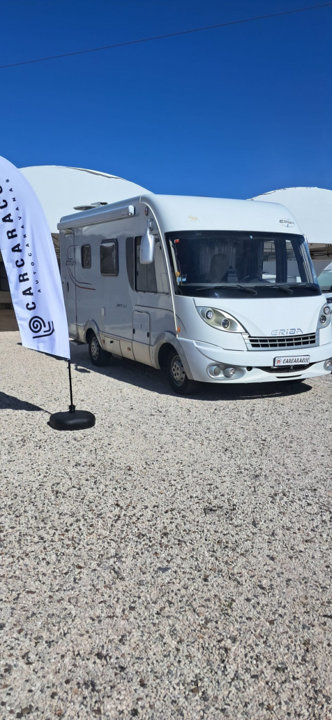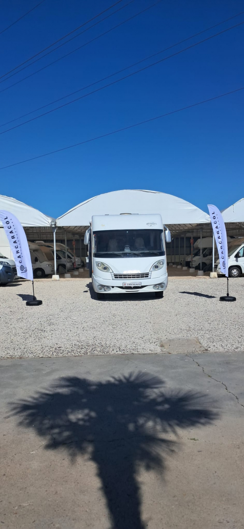 Se trata de una autocaravana Hymer Clase EJ, montada sobre base Fiat Ducato, disponible en el mercado de ocasión. Se encuentra en muy buen estado tanto en el interior como en el exterior, lo que indica que la carrocería, los acabados, los elementos mecánicos y el mobiliario se conservan correctamente y funcionan sin problemas.