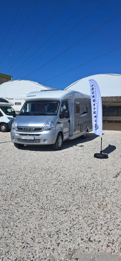 Se trata de una autocaravana Eriba, montada sobre base Renault, disponible en el mercado de ocasión. Se encuentra en buen estado tanto en el interior como en el exterior, lo que indica que la carrocería, los acabados, los elementos mecánicos y el mobiliario se conservan correctamente y funcionan con normalidad.