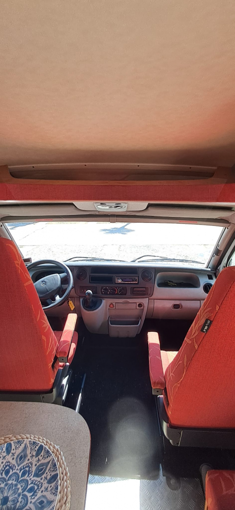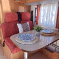 El interior está diseñado para ofrecer comodidad y funcionalidad. Dispone de asientos delanteros giratorios, que permiten ampliar la zona del salón y crear un espacio más amplio y cómodo cuando el vehículo está estacionado. También cuenta con mosquiteras y oscurecedores en ventanas, lo que mejora la ventilación, aporta privacidad y facilita el descanso.