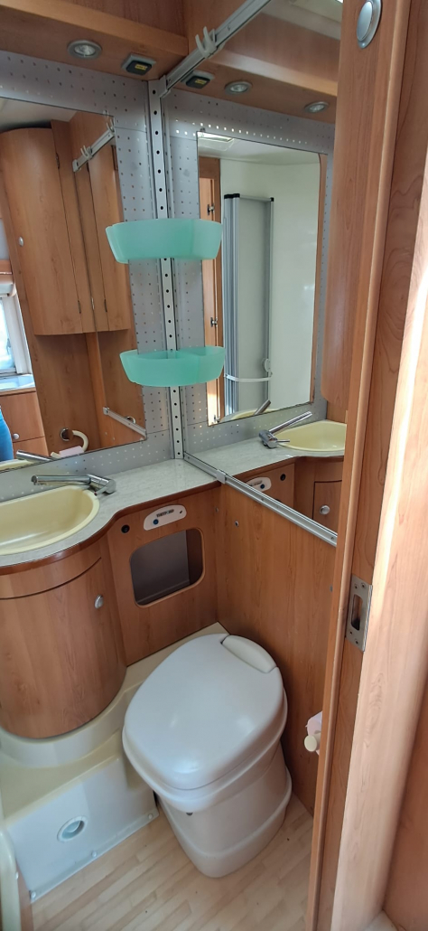 Dispone de un cuarto de baño con ducha y WC separados, una característica muy valorada que aporta mayor comodidad, higiene y facilidad de uso en el día a día dentro de la autocaravana.