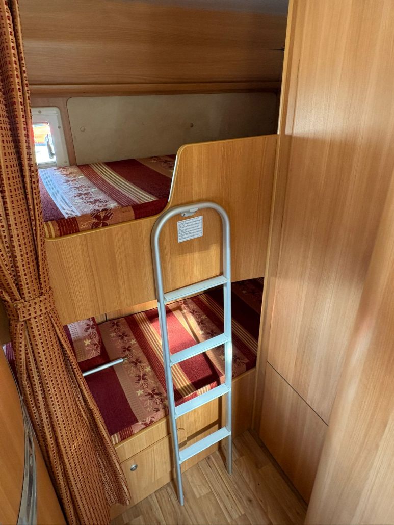 Dispone de una cama transversal grande, dos camas literas y un sofá convertible en cama, permitiendo una excelente capacidad de pernocta sin renunciar al confort. La zona de estar cuenta con un salón espacioso que mantiene una agradable área de convivencia durante el día.