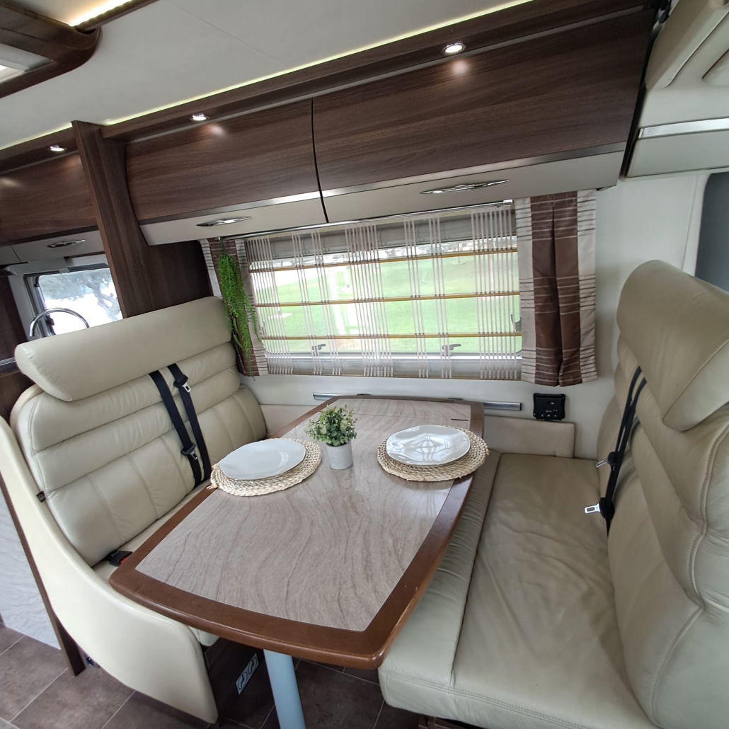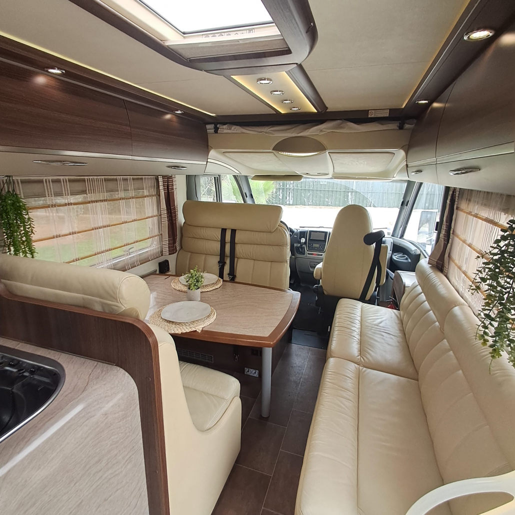 Autocaravana de lujo, modelo Bürstner Elegance I821, año 2011, montada sobre chasis FIAT, con solo 69.000 km reales. Un vehículo cuidado con mimo, pensado para los que buscan viajar con estilo, comodidad y total independencia. Ideal tanto para escapadas familiares como para grandes rutas por Europa. Motor FIAT potente y fiable, con un funcionamiento suave y un consumo muy contenido. 6 plazas homologadas para viajar con total seguridad. Cama transversal trasera amplia y confortable + cama basculante eléctrica en el salón. Salón diáfano de diseño, con excelente iluminación natural y acabados de alta gama. Cocina completamente equipada: Fregadero de acero inoxidable, fogones a gas de tres fuegos, horno integrado, campana extractora, botellero de vino, frigorífico grande trivalente (12V / 220V / gas). Baño privado con ducha separada, inodoro tipo cassette y ventilación independiente. Gran maletero / garaje trasero, ideal para equipaje, material deportivo o accesorios de camping. Antena de televisión y dos televisores instalados a bordo. Placa solar para máxima autonomía energética. Cámara de marcha atrás, para maniobrar con total seguridad. Portabicicletas robusto, preparado para tus aventuras al aire libre. Iluminación interior LED de bajo consumo. Calefacción y agua caliente integradas. Tomas de corriente 12V y 220V en salón y dormitorio. Depósitos de agua limpia, grises y negras de gran capacidad.