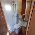 Dispone además de armarios y cajones superiores e inferiores, optimizando almacenamiento de menaje, utensilios y víveres. El baño cuenta con ducha independiente, lavabo y sanitario. La distribución permite moverse con comodidad, mantiene la privacidad y facilita el almacenamiento de productos de higiene y toallas gracias a los compartimentos incorporados.
