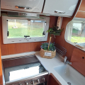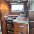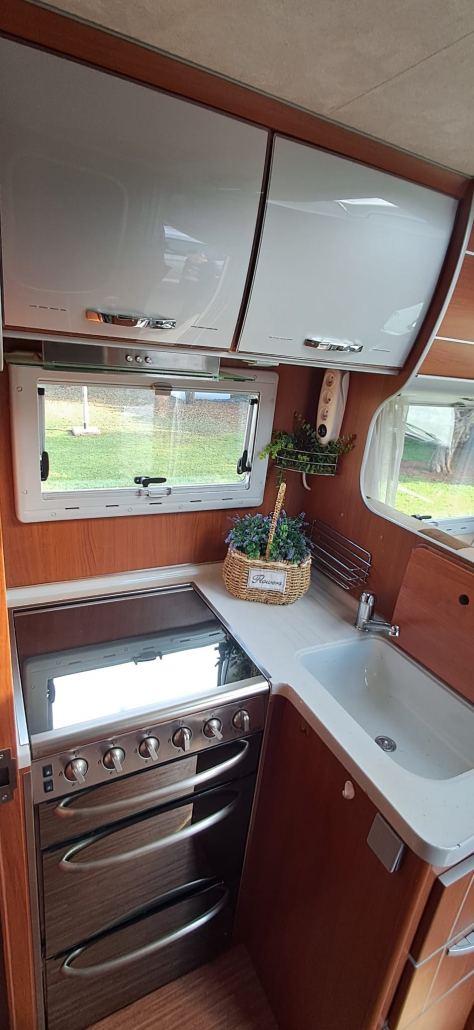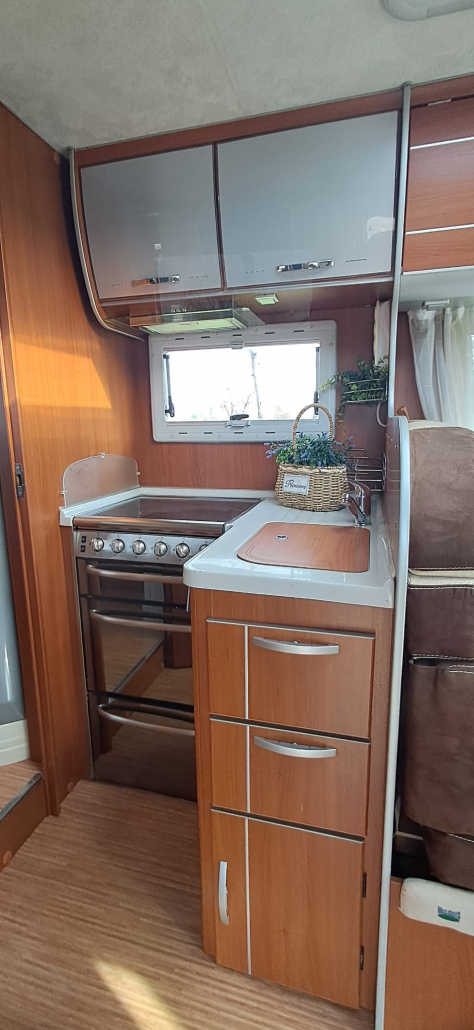 Cocina completamente equipada, con superficie de trabajo suficiente y almacenamiento práctico, ideal para cocinar con comodidad durante tus viajes.