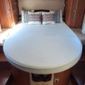 Cama isla, amplia, cómoda y de fácil acceso desde ambos lados, que proporciona un descanso de calidad sin renunciar al espacio.