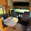 Dispone de 4 plazas homologadas para viajar y dormir, perfecta para parejas o familias que buscan comodidad y funcionalidad en sus desplazamientos. Su distribución interior aprovecha al máximo el espacio, con un salón amplio gracias a los asientos delanteros giratorios, que crean una zona de convivencia luminosa y confortable.