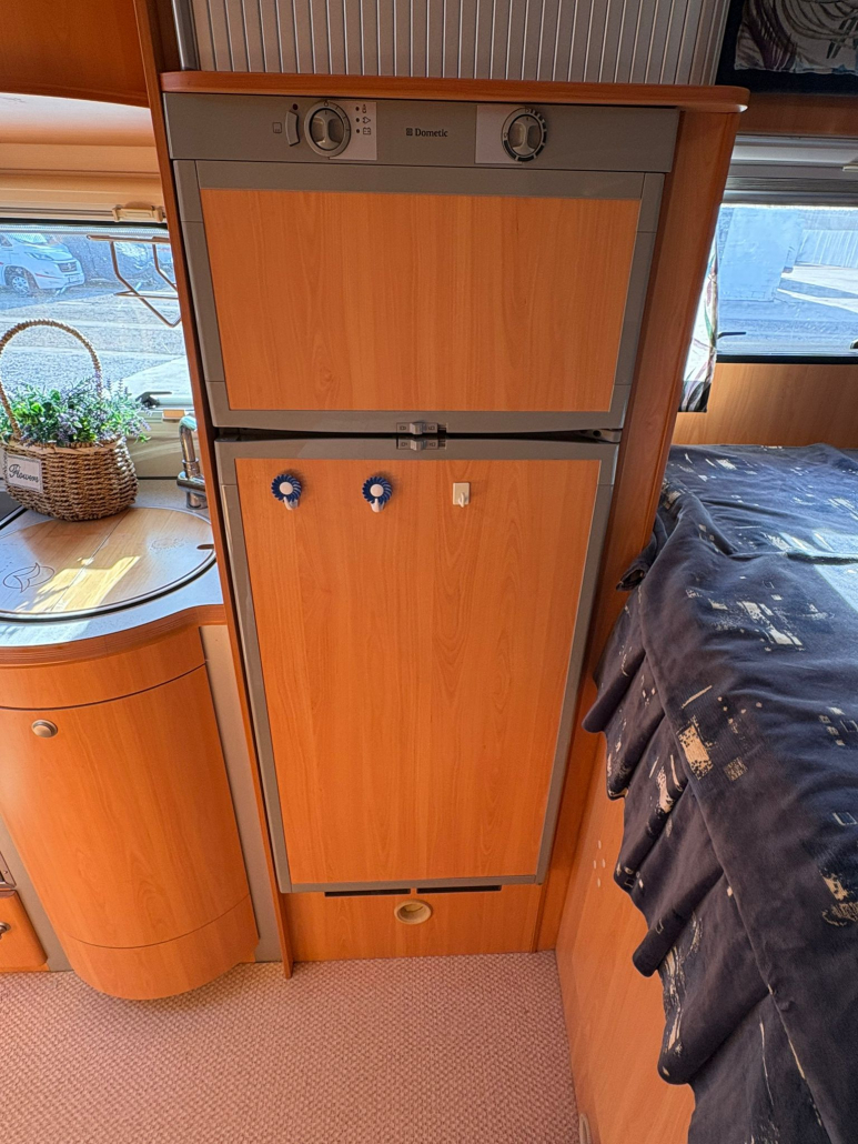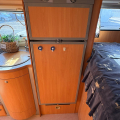 La zona de cocina está totalmente equipada con fuegos, horno, fregadero y frigorífico, permitiendo preparar comidas con total comodidad durante el viaje. En la parte trasera, el área de aseo ofrece baño y ducha separados, una característica poco común que proporciona mayor confort y privacidad.